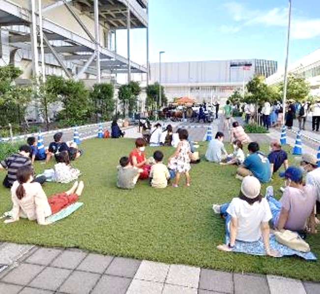 高校生による演奏会は非常に大きな集客効果があり、ステージ周辺は鑑賞する人で埋め尽くされた(コロナ禍で失われた発表の場の提供にもつながった)。また、新たに敷設した人工芝(8.5m×8.0m)は多くの家族連れに利用され、居心地の良さ(滞在性の向上)に寄与。