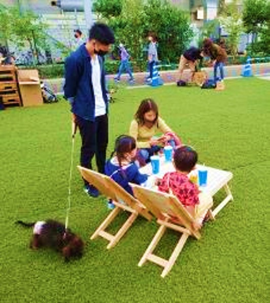 引き続き人工芝ゾーンは多くの家族連れに利用された。レジャーシートにとどまらず今回新たにテーブル・チェアを用意したことで、さらなる居心地の良さ(滞在性の向上)に寄与。