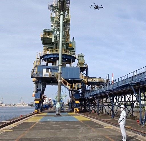 2021年度は千葉ポートタワーの外装点検調査業務でドローンを活用しました。タワーの外装は、従来ゴンドラで点検を行っておりましたが、ドローンを活用することにより、安全かつ短時間で点検作業を終えることができました。
