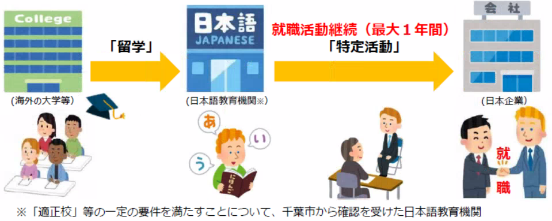 海外の大学等を卒業した留学生について、日本語教育機関を卒業後、一定の要件の下、就職活動継続のための在留資格「特定活動」が最大1年間付与されます。【2021年9月27日に全国措置】