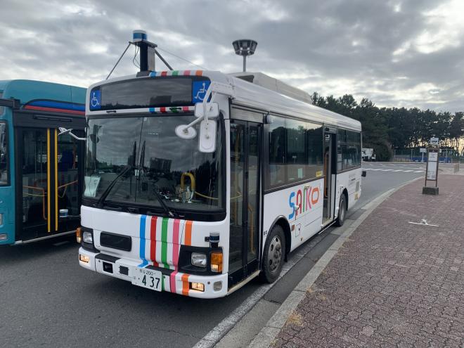 中型バスをベースに自動運転仕様に改造し、遠隔監視の実施や、一般車両が混在する実際の社会実装を想定した環境下での各種技術検証を、「イオンモール幕張新都心グランドモール前」→「ZOZOマリンスタジアム」→「幕張ベイタウン」→「幕張ベイパーク」の周回コース約8.5kmで行いました。