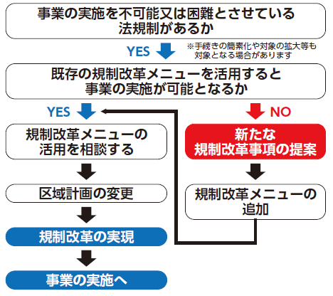 また、既存の規制改革メニューの活用に加え、新たな規制改革の提案を行うことができます。