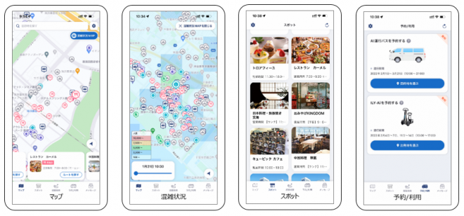 利用者の予約に応じて、AIが最適な運行計画を作成するオンデマンドバスをエリア内で走行させ、オンデマンドバスによる中距離の移動と次世代パーソナルモビリティによる短距離の移動とをシームレスに行えるサービスを提供します。