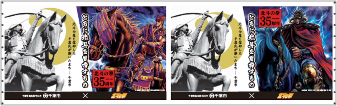 北極星と北斗七星を守護神とした「千葉氏」と、同じく北斗七星がストーリーのキーとなる「北斗の拳」(外部サイトへリンク)が2018年4月から1年間様々なコラボ企画を展開しています。