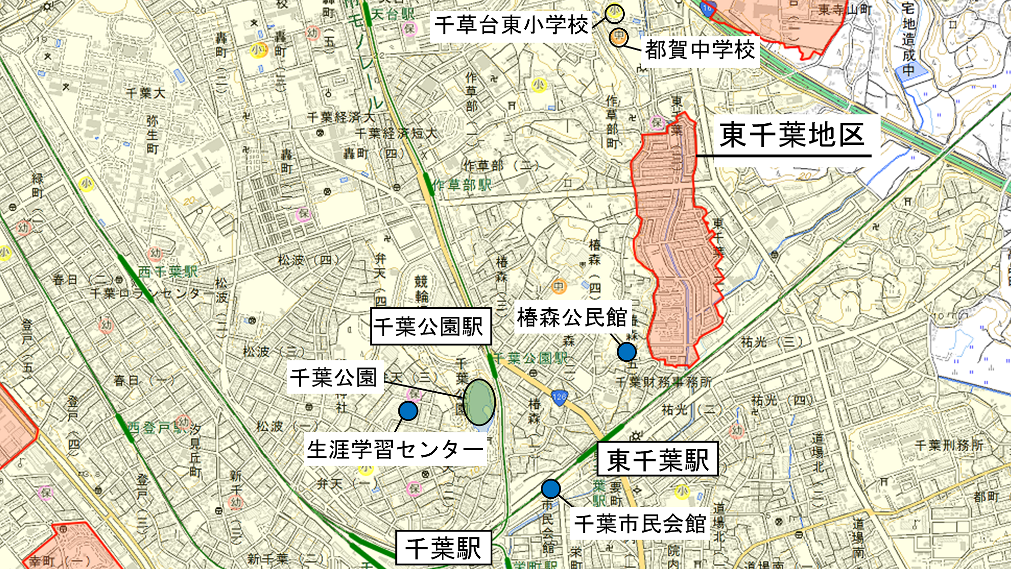 ■最寄り駅からのアクセス JR総武本線「東千葉」駅から徒歩10分 程度 ■町丁目 中央区東千葉1~3丁目の各一部