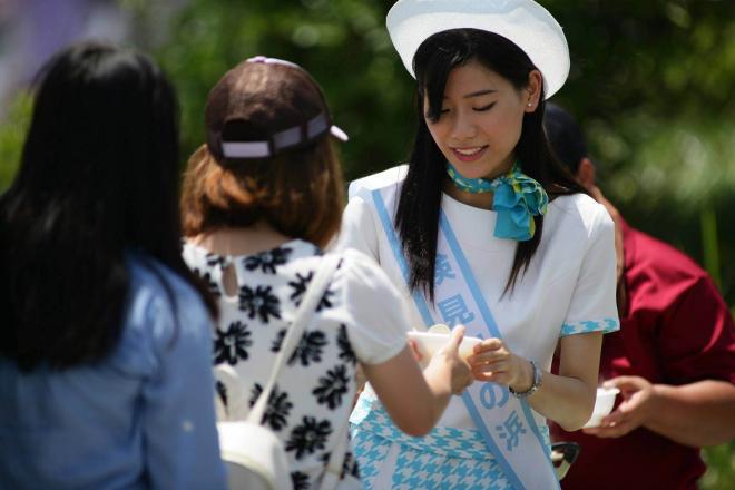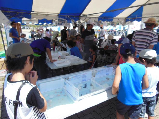 みそ汁によるホンビノスガイの無料試食会は、炎天下のなか大行列ができるほど好評でした!