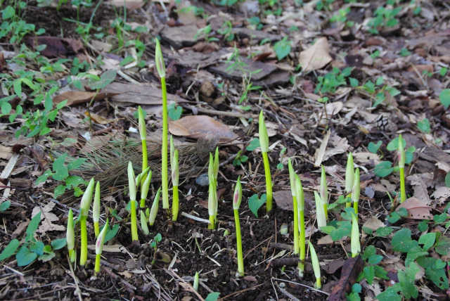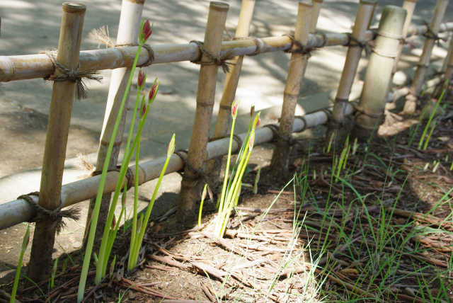 荒木山や忠霊塔の周辺など園内各所でヒガンバナの蕾が出てきます。彼岸(20~26日)頃には見ごろを迎えます。