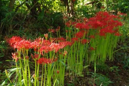 彼岸の入り、気温も朝晩涼しくなる頃で、ヒガンバナの開花が進み7分咲きほどになります。