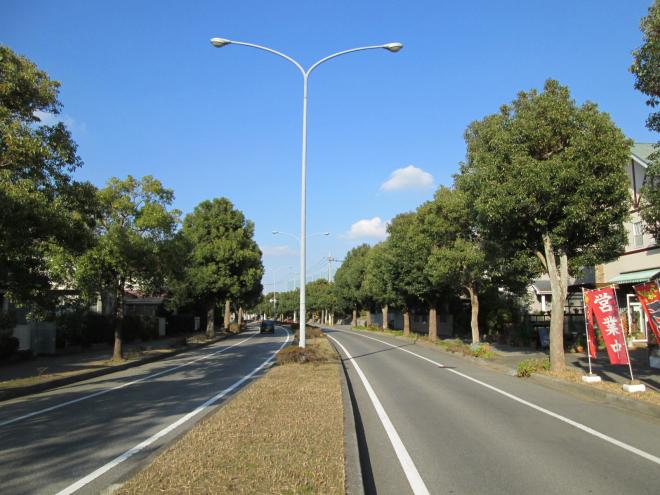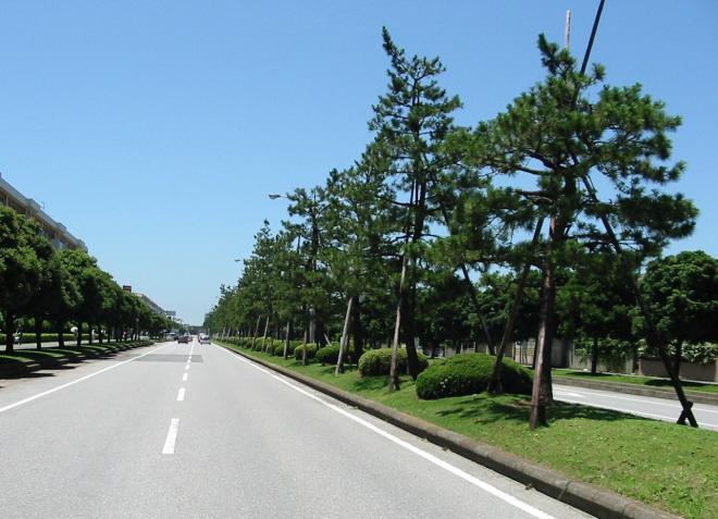 ウバメガシ(歩道側)/クロマツ(中央分離帯)
