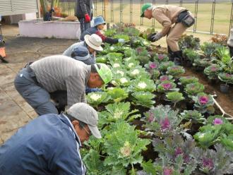 本日のメインは、メンバーが種から育ててきたハボタンの植え付けです。夏の間に種をまき、葉を虫に食われながらも、ポット替えを行いながら大きくなった苗です。