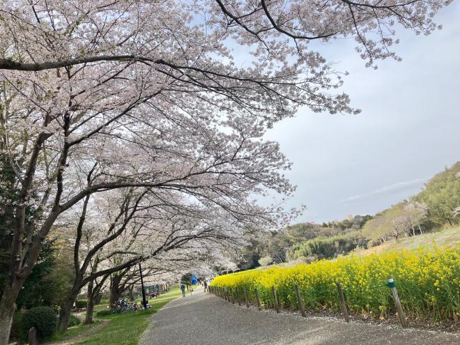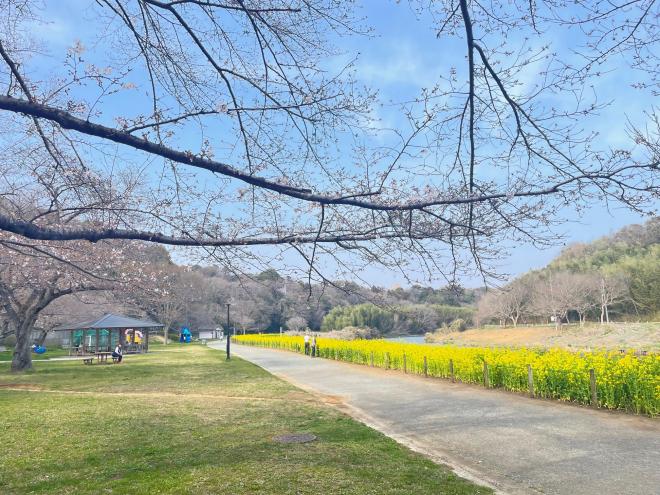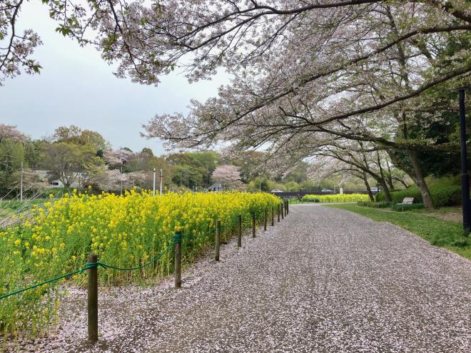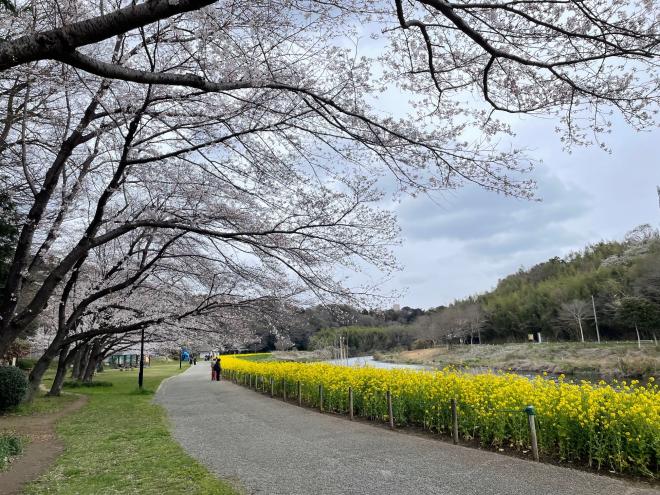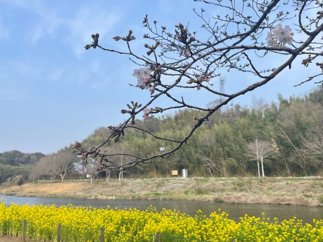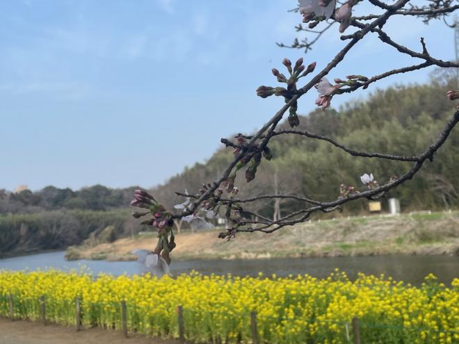開花が進み見ごろとなりました。雨の日が続いていますが、菜の花と桜を合わせてお楽しみください。