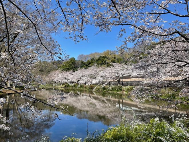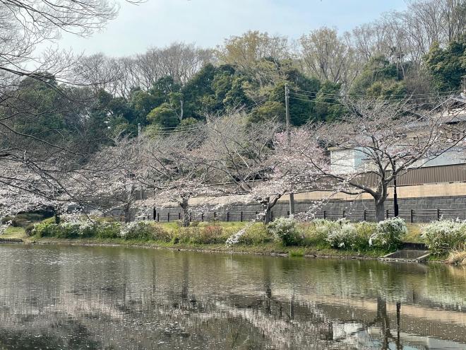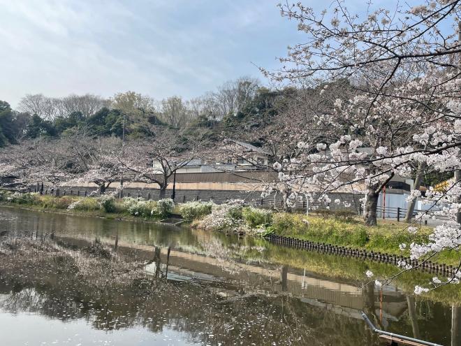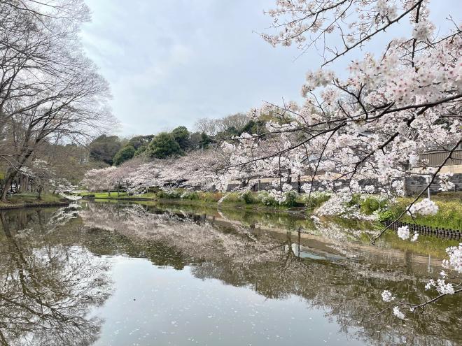 川面に映る満開の桜をお楽しみください。