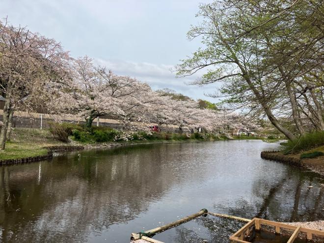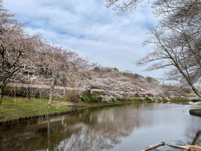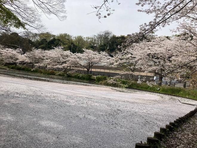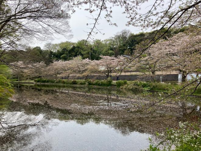 散った花びらが水面にカーペットをつくっています。お早めにお楽しみください。