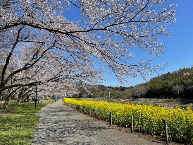 ほぼ満開となりました。菜の花との花の競演をお楽しみください。