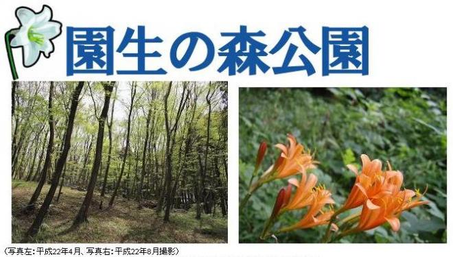 「園生の森公園」は、国道16号、あやめ台団地、あやめ台小学校、京葉道路などに囲まれた場所に位置し、市街地の中で貴重なみどりとなっています。イヌシデ、ヤマザクラ、コブシなどの樹木や、様々な野草が生育しています。四季折々の自然を感じながら、公園を散策してみませんか。