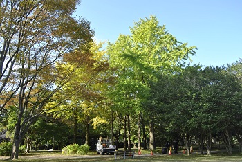 園内では、第1駐車場、市町村の森、お花見広場手前にイチョウがあり、それぞれ黄色に色づき始めました。モミジの色づきは、イチョウより遅く、昨年は11月下旬頃から徐々に赤く色づき始めましたので、もうしばらくお待ちください。