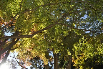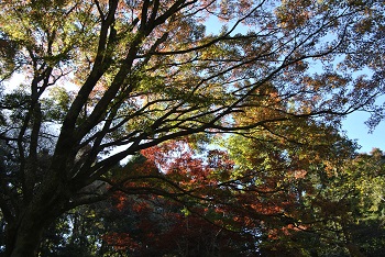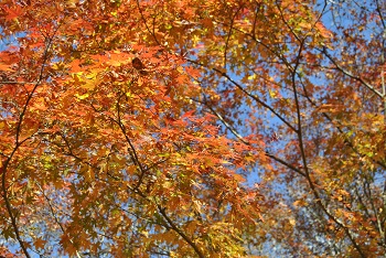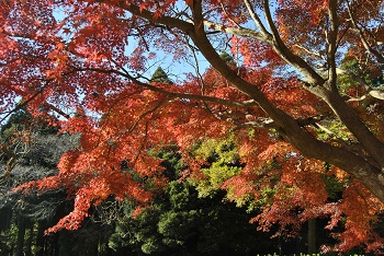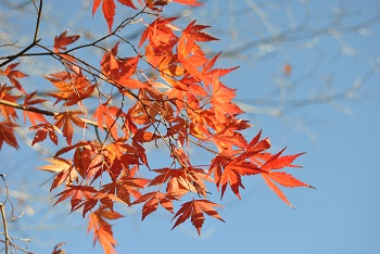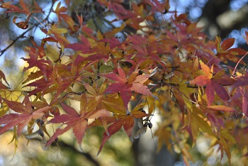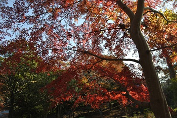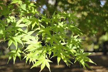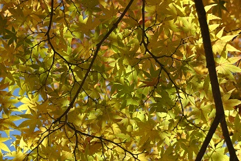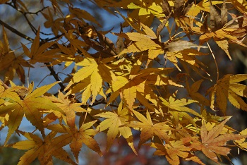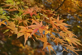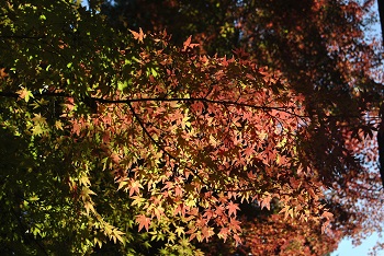 先週よりも、イチョウは落葉が進んできましたが、まだまだ鑑賞いただけます。モミジは場所により落葉し始めたものや、まだ葉が緑色でこれから色づくものもありましたので、もうしばらくご鑑賞いただけます。太陽に照らされたモミジはとても綺麗でした、お天気の良い日にモミジ狩りは、いかがですか?