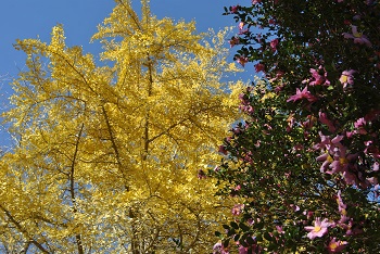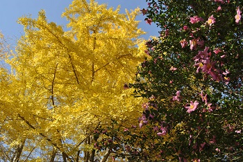 昨夜と今日の強風により、色づきが早かったイチョウは、落葉し始めていましたが、綺麗な黄色に色づき見頃になりました。一日中吹き荒れていましたので落葉が進まないと良いのですが・・・
