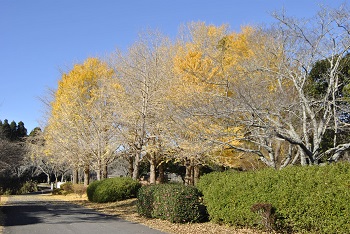 イチョウは、落葉が進み第1駐車場、市町村の森は、まだ少し葉が残っている状態で、お花見広場手前は、13本あるうちの3本しか葉がついていませんでした。イチョウの木の下は黄色い絨毯の様に広がっていました。モミジも、落葉が進んでいるものもありますので、お早目のご鑑賞をお勧めいたします。