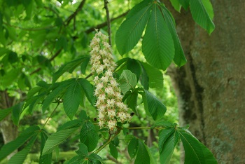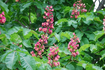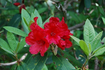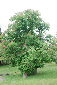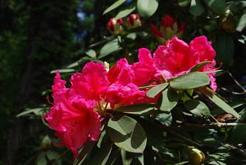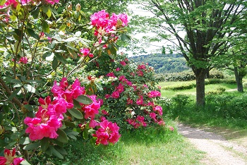 シャクナゲの道では、シャクナゲが開花し始めてきました(本数は少ないです)花木園では、トチノキの花が開花し、ユリノキの花が甘く良い香りが漂っています。