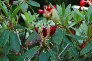 前回よりもシャクナゲの花数が増えてきました。蕾もまだ沢山ついていましたので、これから次々と開花してくると思います。シャクナゲの花の脇にはカルミア(数は少ないです)も開花しています。