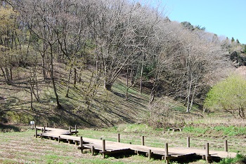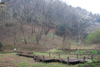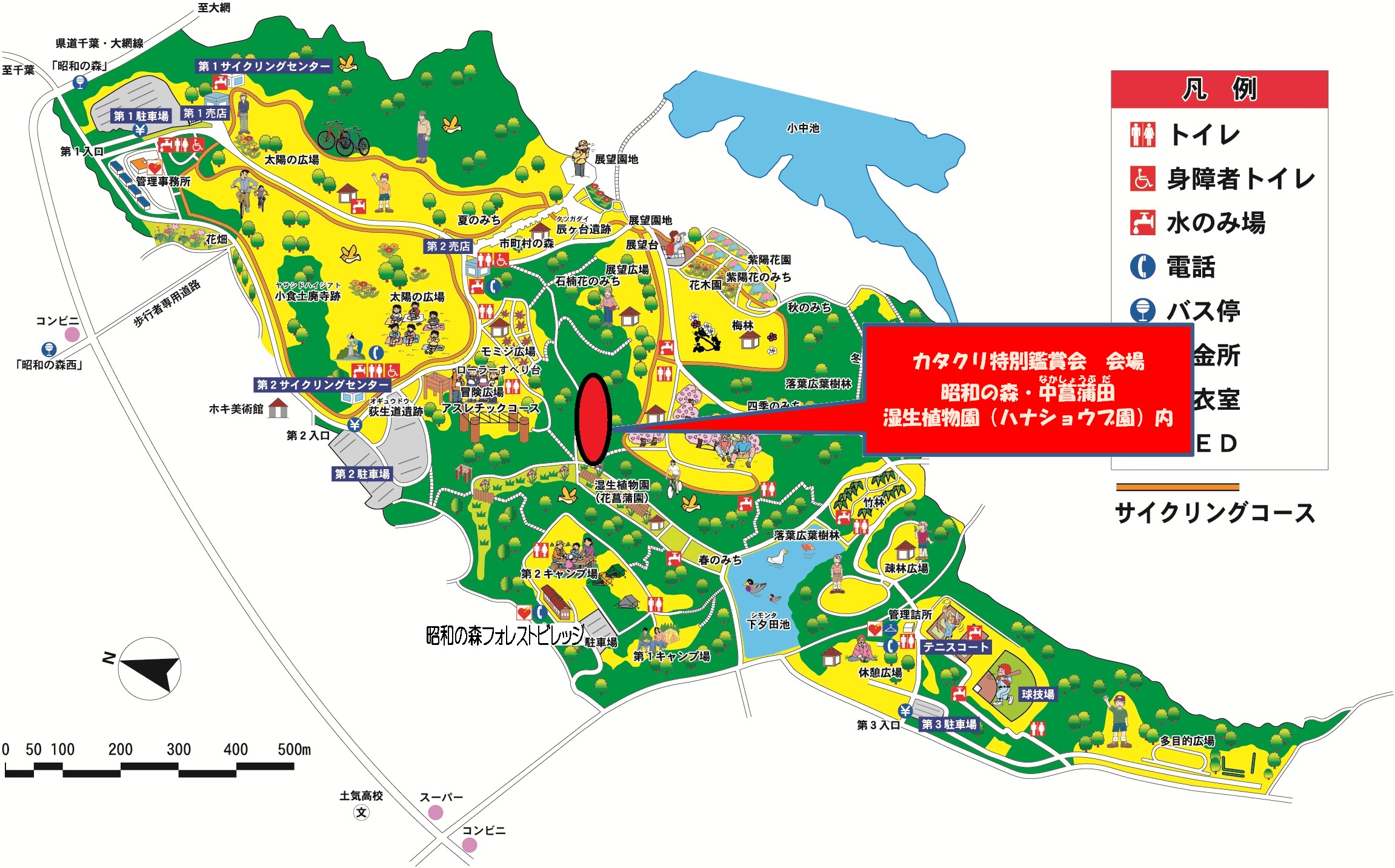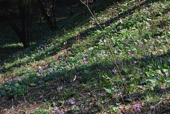 昭和の森・湿生植物園(ハナショウブ園)内の中菖蒲田(なかしょうぶだ)近辺の斜面地では、例年3月下旬からカタクリの花が観賞できます。