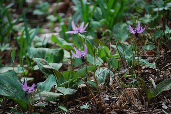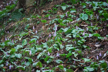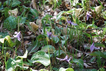 カタクリの花は色あせて、ほとんどの花が見頃が過ぎてしまいました。今年は天気が悪かったり気温が低かったりと綺麗に花の反り返りが見られる日が少なかったです。来年の開花に、ご期待下さい。
