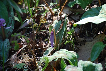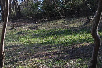 第2駐車場階段下付近のカタクリは、十数輪程の開花でした。こちらは、ハナショウブ園斜面より開花が少ない状態でした。