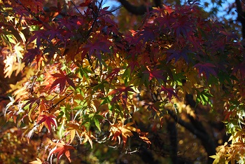月曜日と昨日の冷たい雨と強風により、早くに色づいていたイチョウ、モミジの落葉が進んでいましたが、先週には、まだ色づいていなかったモミジが少しずつ色付き初めてきましたので、今シーズンも12月上旬までは紅葉が楽しめそうです。