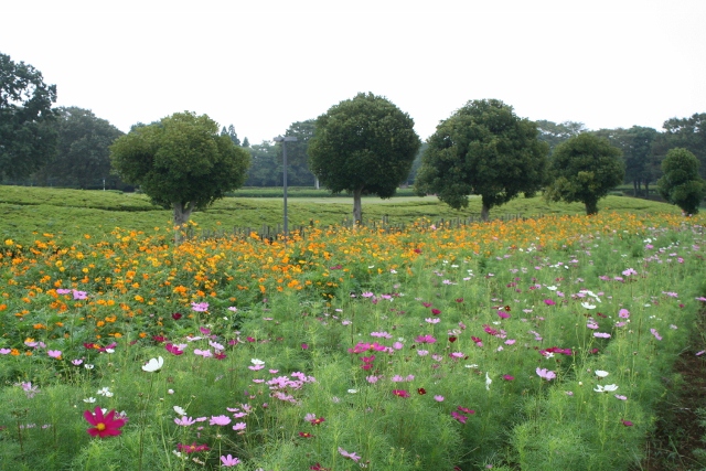 This2,800平方メートルgardenisdressedwithfieldmastardinspring,andcosmosinfall.