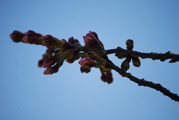 太陽の広場の東側のサイクリングコース脇のヤマザクラが見頃となりました。(数は数本しかありません)お花見広場のソメイヨシノは、2日前よりもピンク色の蕾が大きく膨らみトイレ付近のソメイヨシノは十数輪の開花が確認できました。明日からの3連休、気温が高くなる予報ですので開花が進んでいくようならば来週には、見頃になるのではないでしょうか。