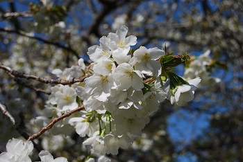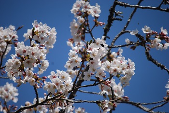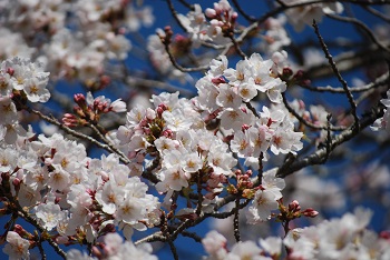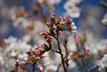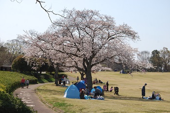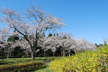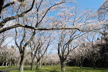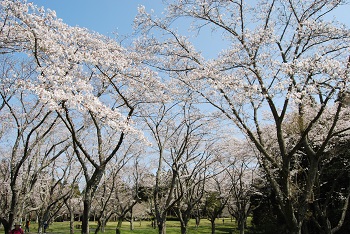 太陽の広場のヤマザクラは散りはじめていますが、ソメイヨシノや他のサクラも見頃となりました。お花見広場のソメイヨシノも見頃になっています。