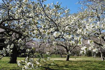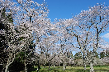 花冷えの中、昭和の森の太陽の広場では、ヤマザクラ、第一駐車場階段上、売店付近お花見広場など園内各所でソメイヨシノが開花しています。園内全体では、約8分咲きほどの開花となり見頃となっています。この先、気温が上がる日が続くと開花スピードが進み見頃の期間も短くなってしまうと思いますのでお早目のご鑑賞をお勧めいたします。