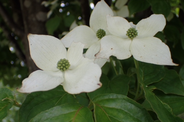 ヤマボウシの花が満開。空に向かって ひろがっているのは、鳥へのアピールかな? |