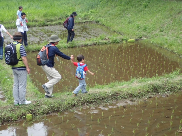 田植えが終わった水田をのぞいてみるとメダカや オタマジャクシなど |