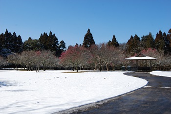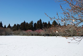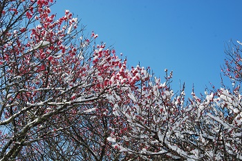 昭和の森も昨夜からの雪で開花した早咲きの紅梅、白梅に積雪があり梅林も銀世界となりました。前回は、白梅の開花も少ない状態でしたが早咲きの白梅の開花が進んできました。早咲きの紅梅も開花が進んでいます。遅咲きの紅梅、白梅はまだまだ蕾が固い状態です。