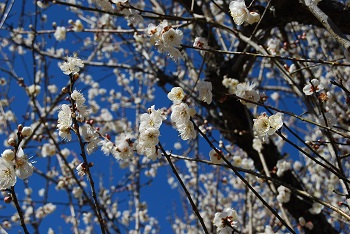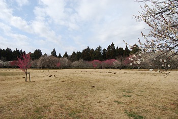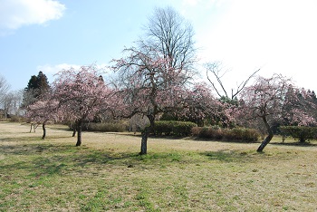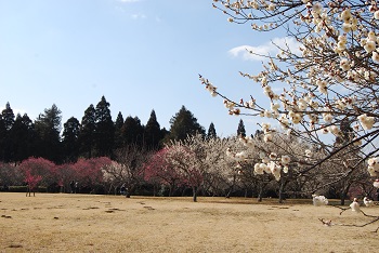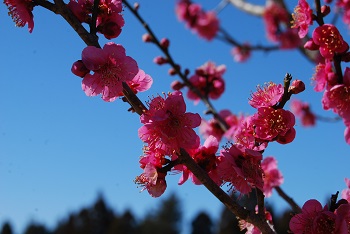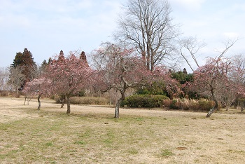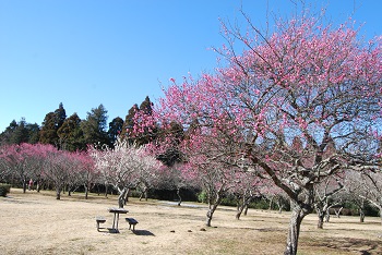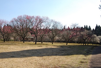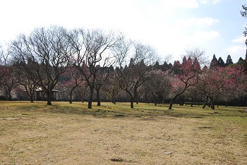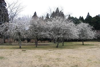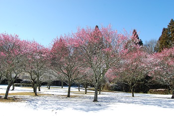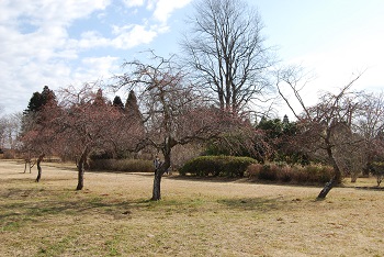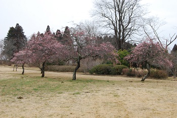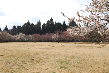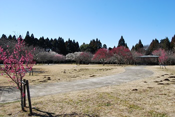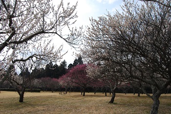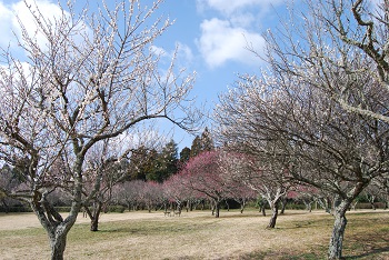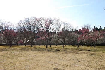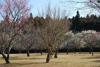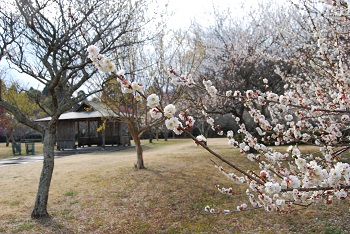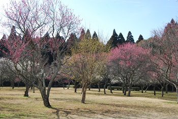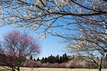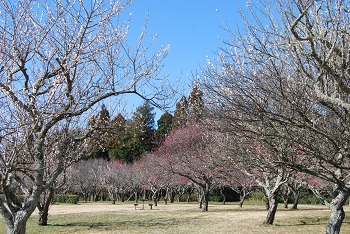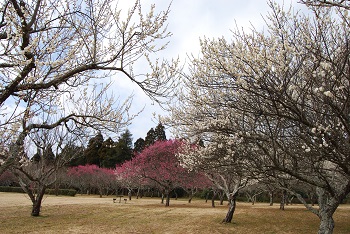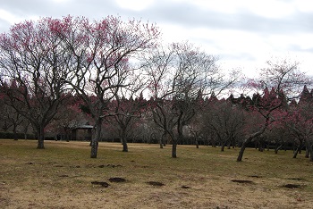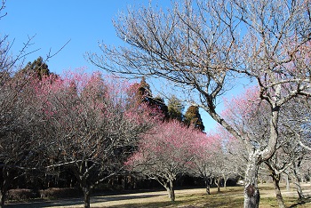 昭和の森の梅林は、早咲きの梅、遅咲きの梅、しだれ梅の順で開花となります