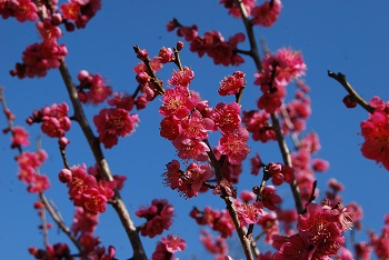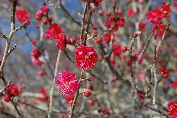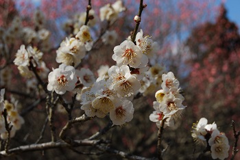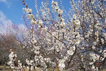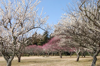 梅林では、早咲きの紅、白の一重咲き、八重咲きが見頃となりました。これから、遅咲きの紅、白の梅も開花し、シダレ梅も開花してきます。梅の良い香りも楽しめますのでゆっくりと散策してみてはいかがですか?