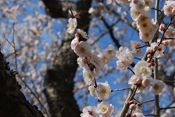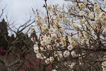 早咲きの紅梅、白梅の見頃が続いており梅林が色鮮やかになっています。今日は天気が良く暖かかったので多く方が鑑賞にいらしていました。遅咲きの梅も少しづつ膨らみ始め、シダレ(白)は蕾が大きく膨らんできましたが、シダレ(ピンク)はまだ蕾が固い状態でした。サンシュユの黄色い小さな花がやっと咲き始めてきました。もうじき、梅林が赤、白、黄と色とりどりの色合いがご覧頂けると思います。
