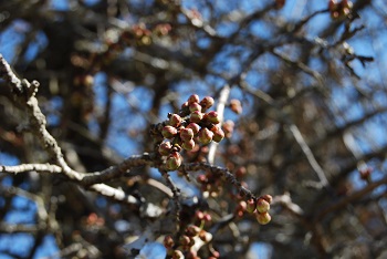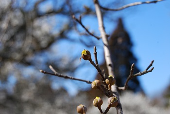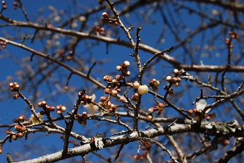 土曜日と月曜日に積雪があり、開花している花が心配されましたが、影響は無かったようで早咲きの見頃が続いています。梅林には、サンシュユも数本あり蕾が大きく膨らんでいました。サンシュユの黄色い花が開花すると黄、白、ピンクと梅林が華やかな彩となります。シダレは、まだ蕾が固いのでもう少し時間がかかりそうです。