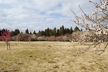 5日前に比べ開花が進み、梅林に紅白の開花がわかるようになってきました。昨年植えた若い梅の木も蕾を沢山付けていますので、これから次々と開花することでしょう。足元には、黄色いタンポポも咲いてきて春の足音も少しずつ聞こえてきました。