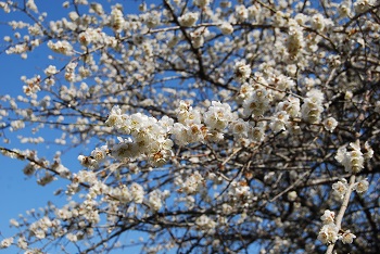 早咲きの梅は一部色あせや、散っているものもありましたがシダレ(白)が見頃となり全体でも見頃が続いています。シダレ(ピンク)は、3分咲程、サンシュユも咲き始めてきており梅林の紅白の中に黄色のサンシュユが差し色となり鮮やかになってきました。梅の木には、一重咲、八重咲、色の濃淡と、違う木々が色々とある中に、一本の梅の木に一重咲(白)と一重咲(ピンク)が一緒に咲いているものもあります。一本、一本見比べてご鑑賞いただけると楽しめるかも知れませんね。昨年は、2月8日~3月8日の期間が見頃でしたが、今年は気温の変化が大きいので見頃の期間が短くなってしまうかもしれませんのでお早目のご鑑賞をお勧めいたします。