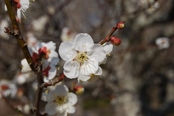 遅咲きの梅は、色あせ散っているものが多くみられ、サンシュユ、一重咲(ピンク)、一重咲(白)の花が若干鑑賞出来る程度です。