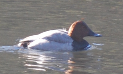ホシハジロ(冬)★★ 頭部が赤褐色、目が赤い、体は灰色で胸が黒いのが特徴。