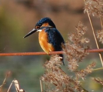 カワセミ(留・漂)★★ 長く黒いくちばし、緑色の翼、コバルトブルー色の背中、お腹のオレンジ色が特徴。 水中へダイビングして魚を捕えます