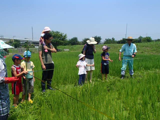 前回の活動から2か月の間があったこともあり、背の高くなった稲や垂れ下がる稲穂に、皆さん驚きや喜びの声をあげていました。