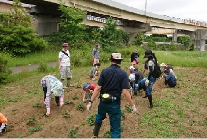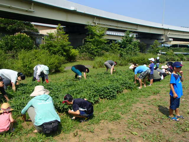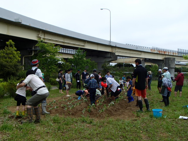 参加者の皆さんも、稲やさつまいもの健やかな成長を願って作業をしました。