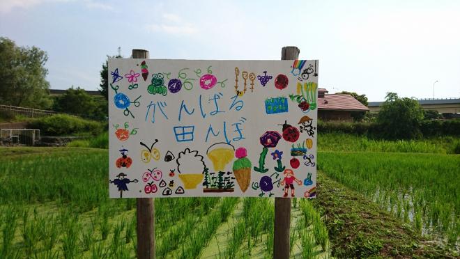 4.最後に、子供たちが主役になって、田んぼの看板づくりをしました。どちらも、田んぼやお米に対する想いの詰まった力作です!