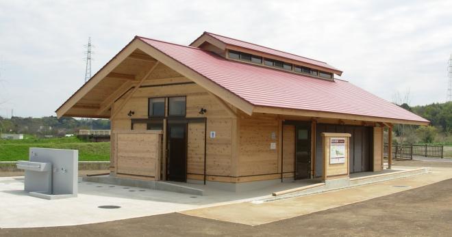 都川水の里公園の入り口からすぐ見える「体験棟」です。稲作体験講座は、この施設を拠点としています。