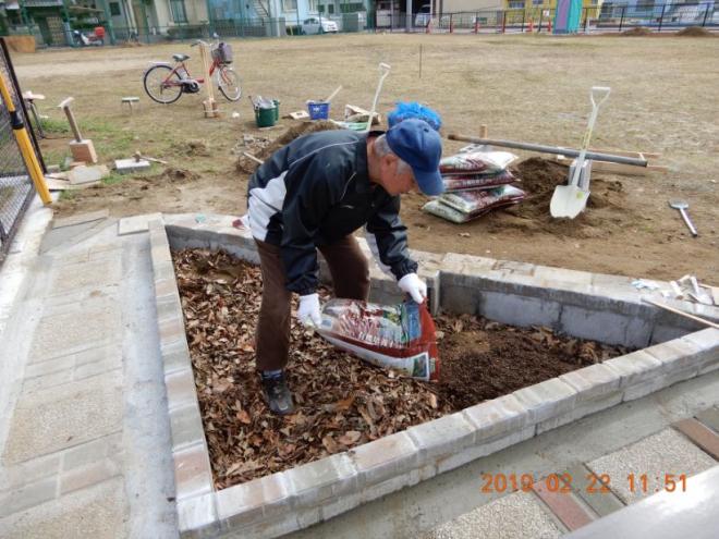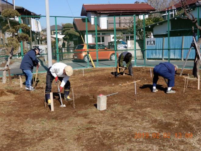 1月から2月にかけて、公園の顔となる大きな花壇が整備されていきました。